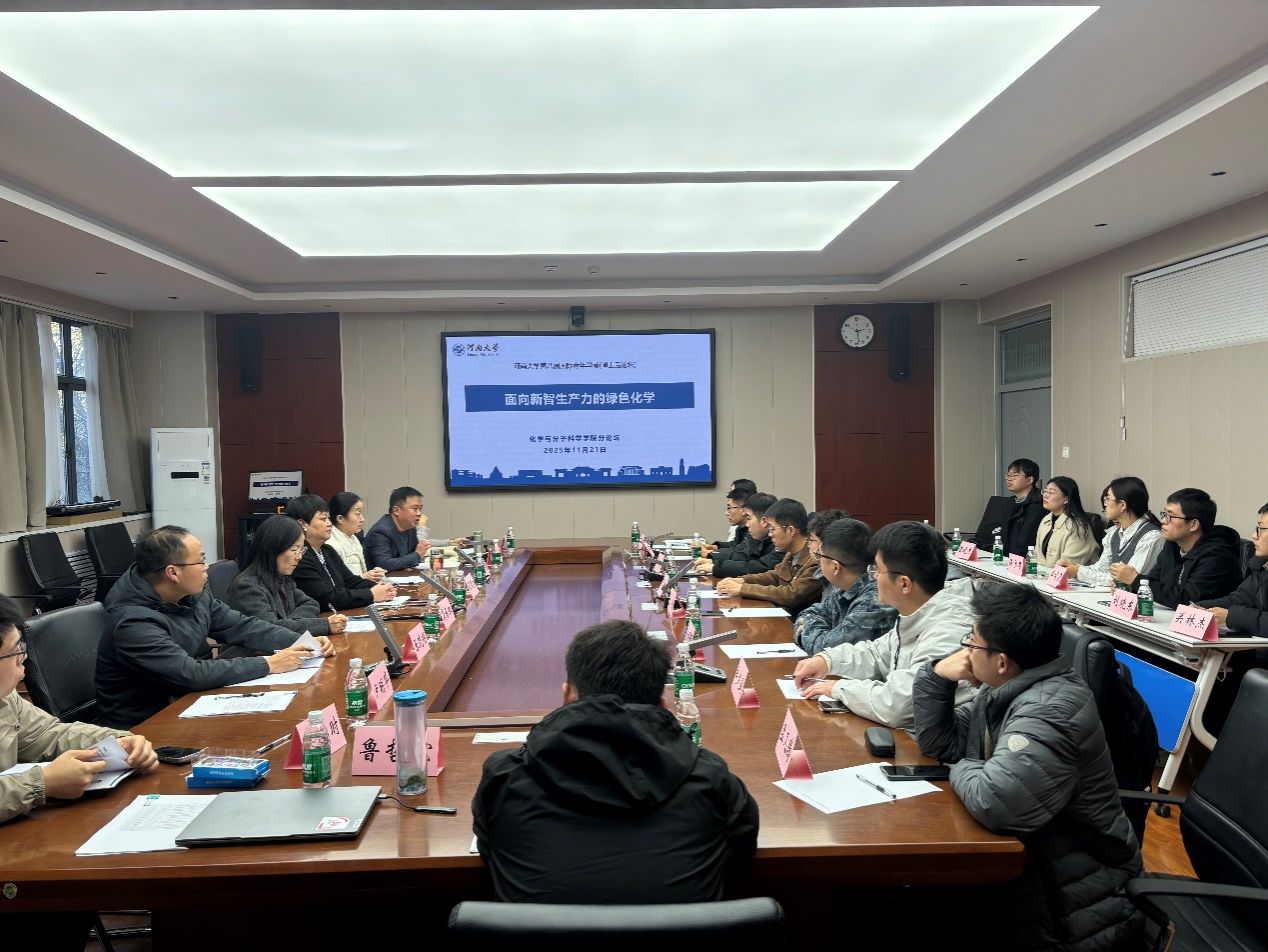 2025年11月21日,河南大学第八届国际青年学者(博士后)论坛“面向新智生产力的绿色化学”平行论坛在化学与分子科学学院220会议室举行。学院党委书记常凤香,省特聘教授王丽、龚春红、卢明华及部分校内高层次人才代表参会。论坛由吴玉锋主持。