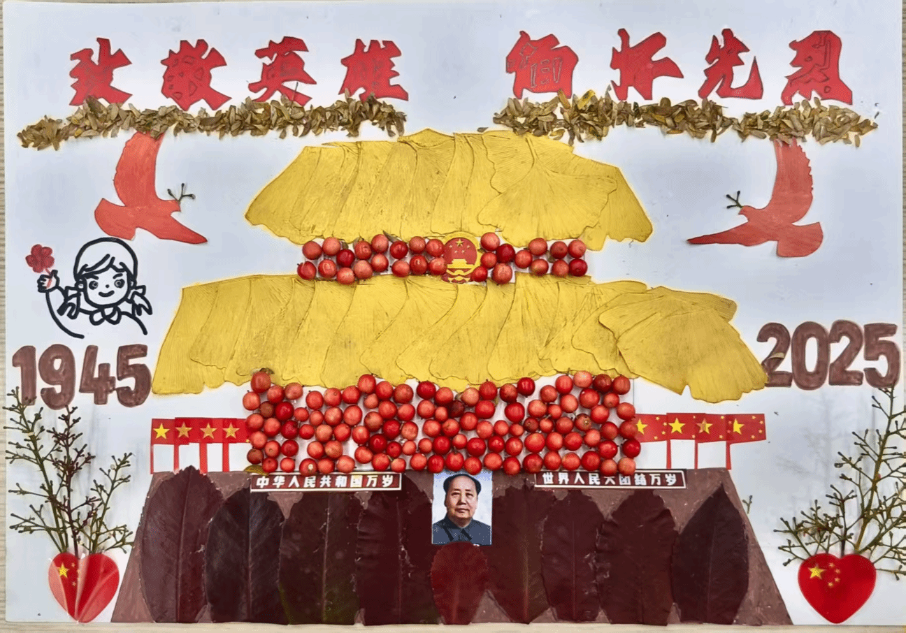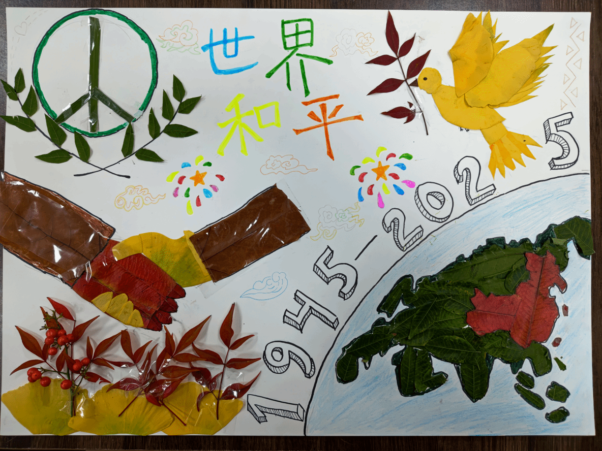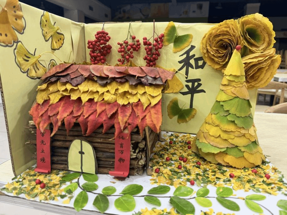 此次活动以“金秋盼落叶,和平映山河”为主题,鼓励师生利用校园内的落叶、枯枝等自然素材,通过剪、贴、拼、叠等手法,创作出兼具思想性与艺术性的和平主题作品。同学们热情高涨,纷纷走进校园角落收集素材,有的以落叶为笔勾勒安宁图景,将白鸽、橄榄枝等和平符号与铁塔湖、明伦堂等校园风光相融,定格岁月静好;有的以自然为卷讲述和平愿景,用不同形状、颜色的叶片组合成携手同行的身影、守望相助的瞬间,传递对安宁生活的珍视;还有的结合专业特色,将分子结构、生态循环等化学与自然元素创意转化,以理科生的独特视角诠释“万物共生、和平共处”的深层内涵。作品题材丰富、构思新颖,每一幅都凝聚着创作者对和平的向往与守护,彰显了我院学子的人文情怀与创新精神。