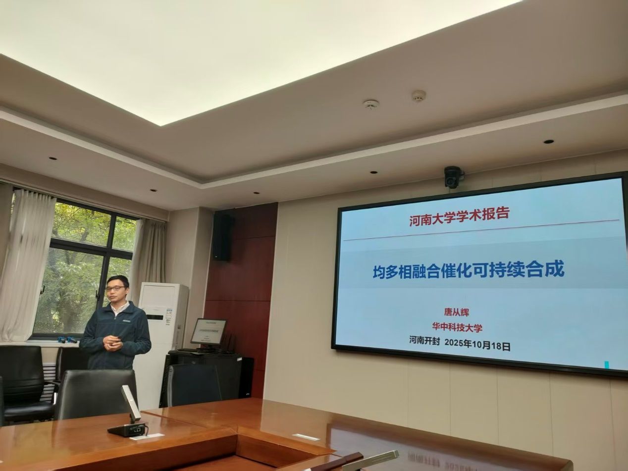 20251018日,应学院邀请,华中科技大学唐从辉教授在学院220会议室进行了一场题为“均多相融合催化可持续合成”的学术报告。本次报告由张鹏飞老师主持。