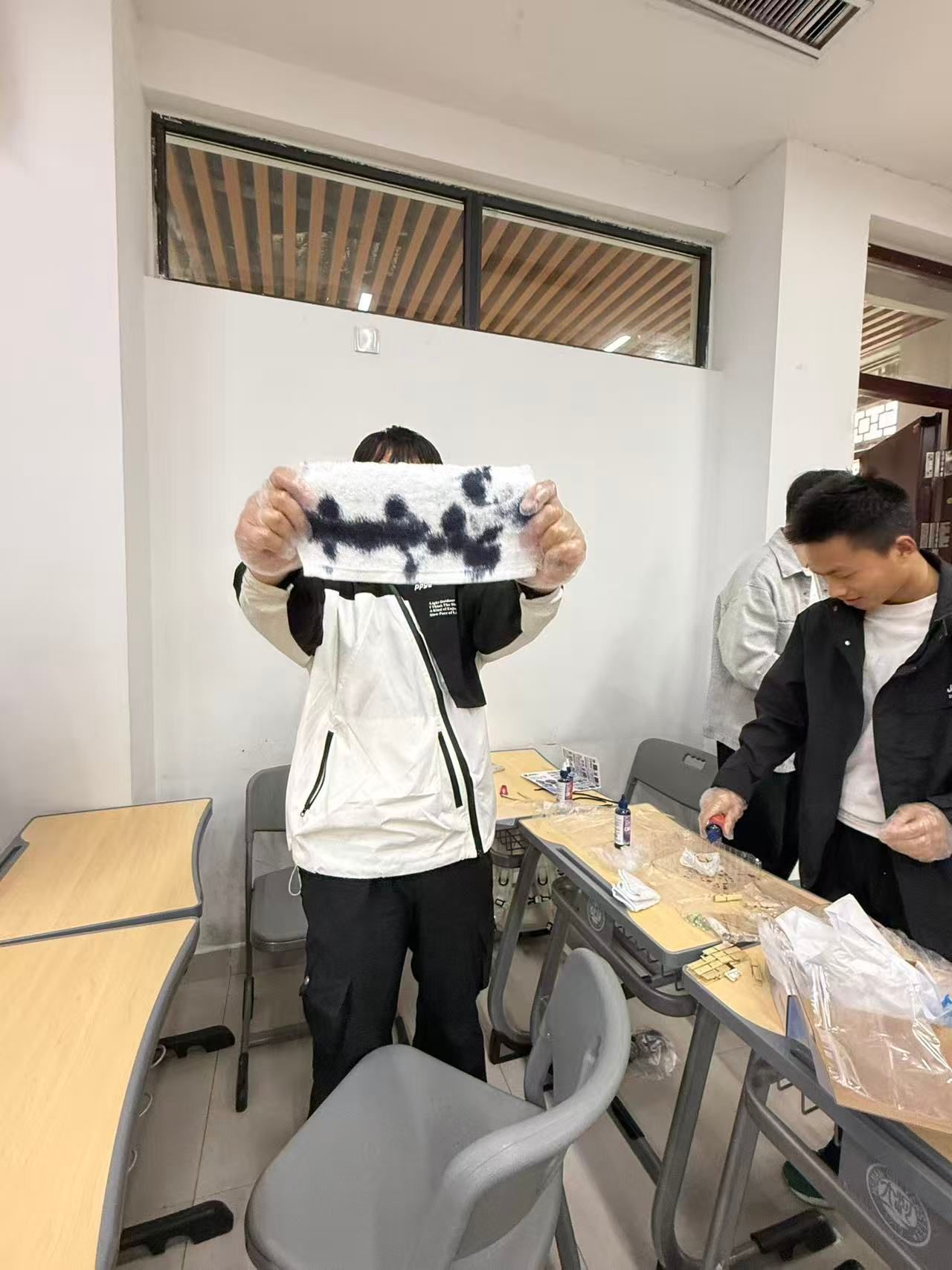 巧折素布间,晕染千般色。化学类三班开展非遗扎染文体活动,同学们围坐一堂,认真聆听扎染非遗文化知识讲解,亲手体验折叠、捆扎、染色等完整制作过程,将匠心与巧思晕染成一件件独一无二的蓝白佳作。活动现场氛围轻松愉悦,大家在指尖流转间感受传统手工艺的深厚底蕴,在协作探讨中锻炼动手实践与创新能力,在欢声笑语里增进交流互动,既传承了非遗文化、厚植了文化自信,也进一步凝聚了班级情谊。